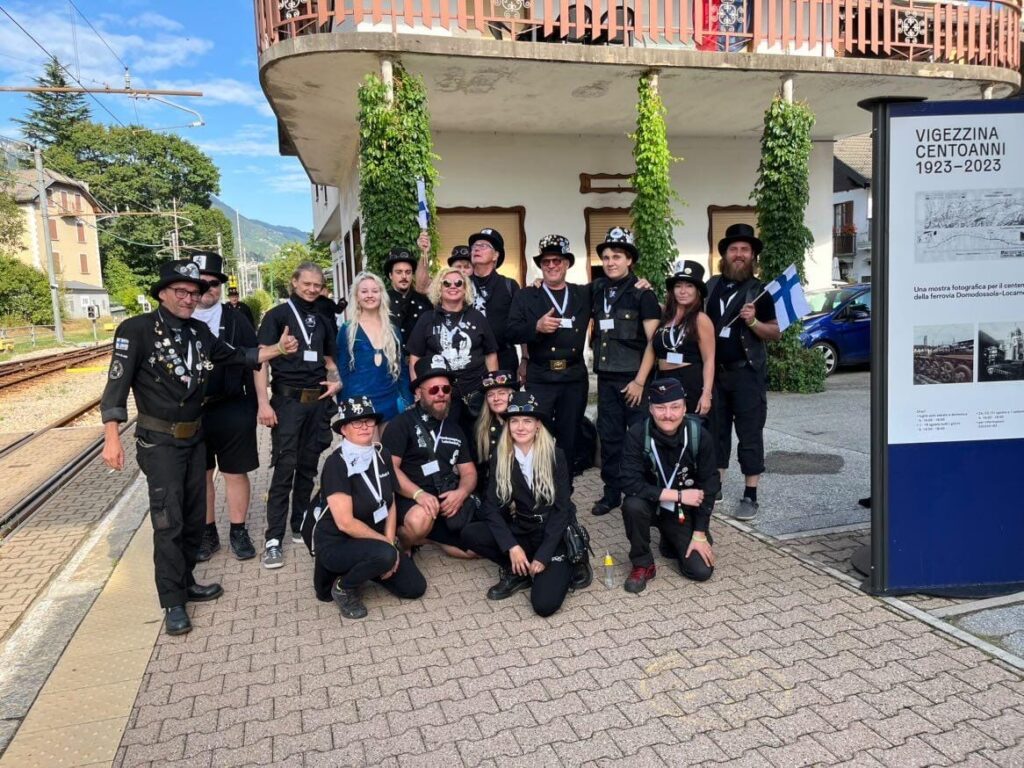 Suomalaisia nuohoojia oli matkassa tänä vuonna noin 20. Osa heistä ehti mukaan iloiseen yhteiskuvaan kun teimme maanantaina juna-asemalla lähtöä Domodossolaan.