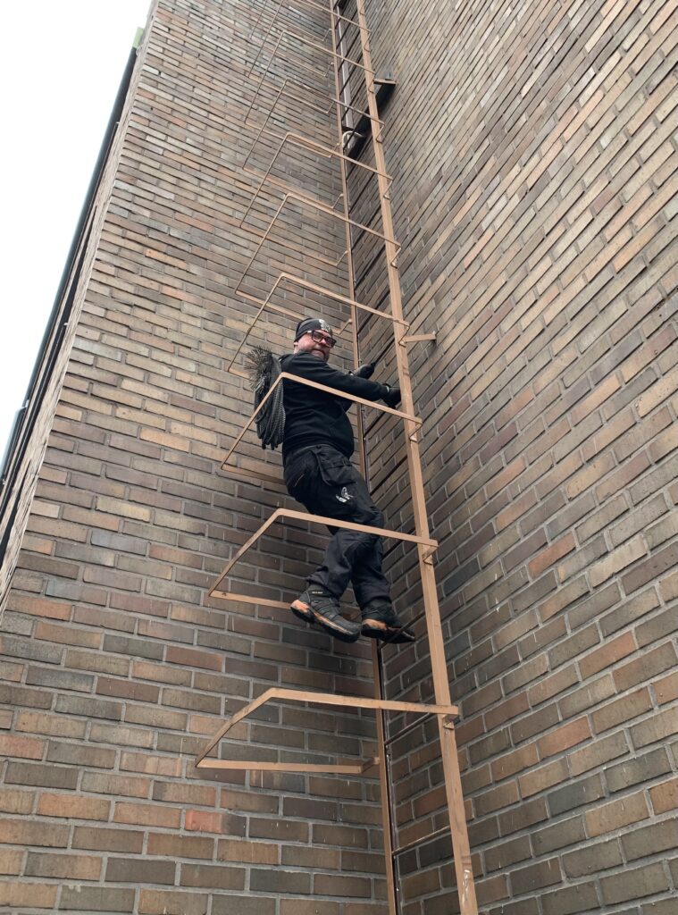 Nuorelle yrittäjälle tällainen oli mukavaa puuhaa, kun sai kiipeillä pitkän matkaa pystytikkaita yläilmoissa sijaitseville piipuille, joko talojen seinustoja tai piipun kylkeä pitkin. Toki osassa kerrostaloissa mentiin katolle vinttikerroksessa sijainneen kattoluukun kautta.